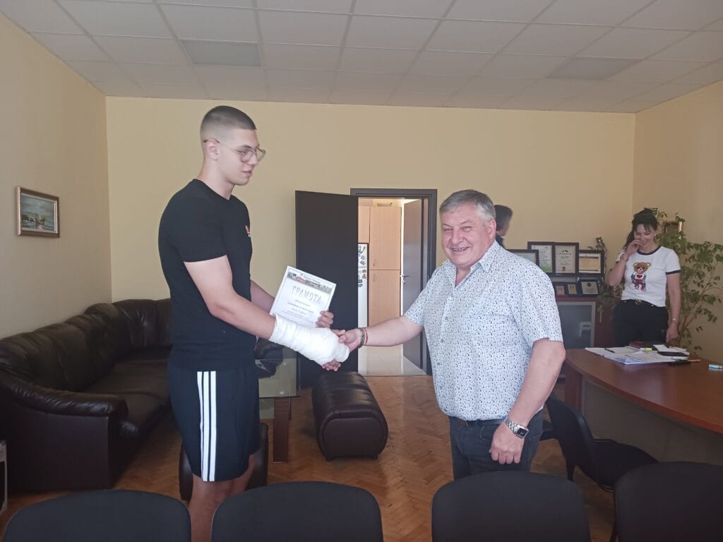 кметът на община Гулянци Лъчезар Яков и кметът на Гиген Верка Тонова посрещнаха републиканския шампион по бокс при младежите – Марио Трифонов.