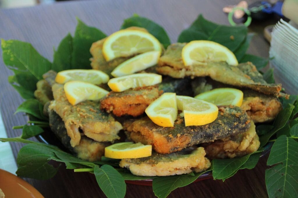 рибена чорба /саламура/ и на характерни рибни и домашни ястия от региона.