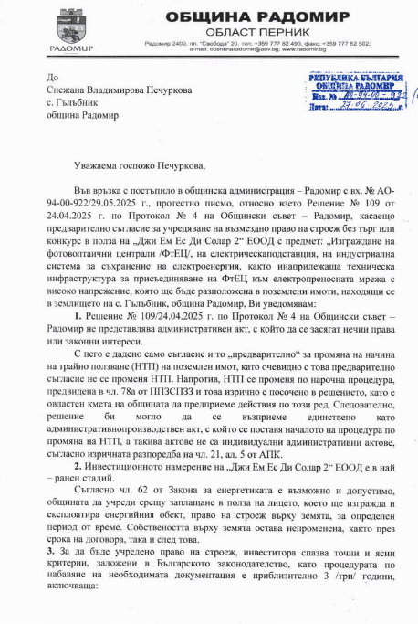🚨 Решение на Общинския съвет за соларен парк Радомир